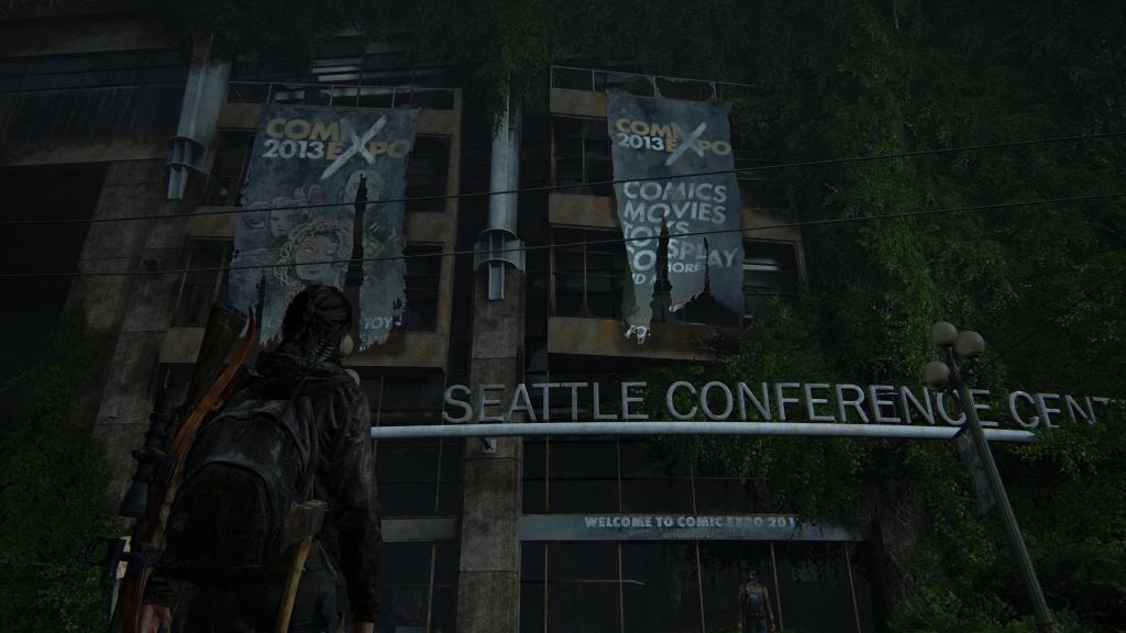In the game you – as Ellie – can explore Downtown Seattle on foot and on horseback to pick up collectibles, trigger converstaions and (of course) fight your way past enemies. Overrun by the infected in the game, the courthouse is actually the William Kenzo Nakamura US Courthouse on Fifth Avenue.