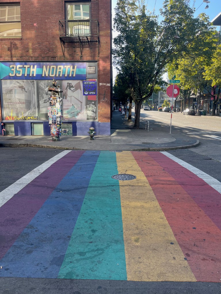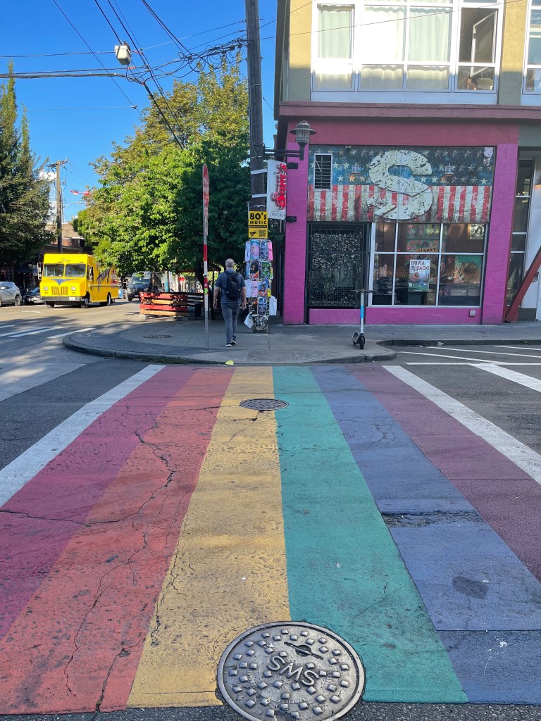Once you leave the downtown area, you progress to Capitol Hill. In 2022 Seattle, Capitol Hill is a busy and popular area of the city, and the rainbow crosswalks that feature in the game can still be seen at a few junctions.