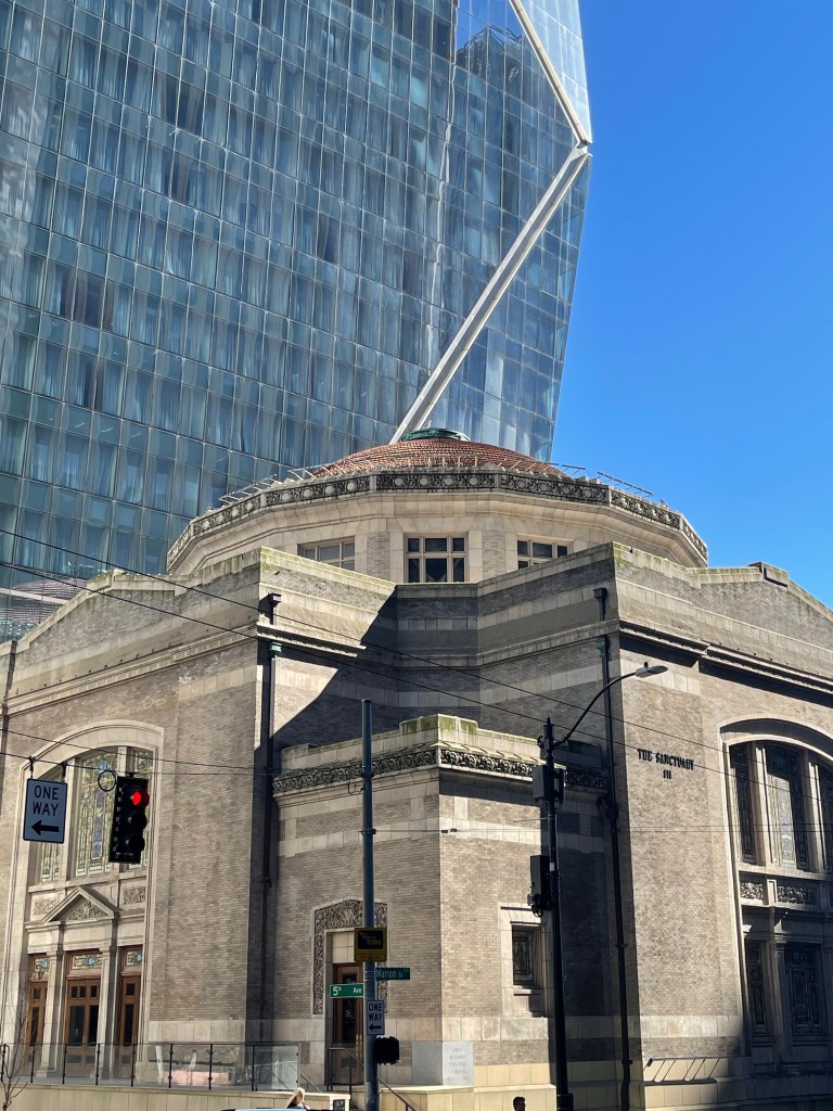 During gameplay, Ellie and Dina explore a domed building which turns out to be a synagogue, revealing a little more about Dina’s character and history. Outside of the game, it’s the Daniels Recital Hall, not far from the courthouse.