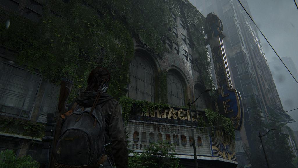 At the end of Day 1, Ellie and Dina find refuge in an old theatre. In game it’s The Pinnacle Theatre, an ornate and grand 1920s building. It’s Seattle’s Paramount Theatre, an architectural delight sitting proudly on Pine Street, and you can see how clearly the game has captured the details of its exterior.