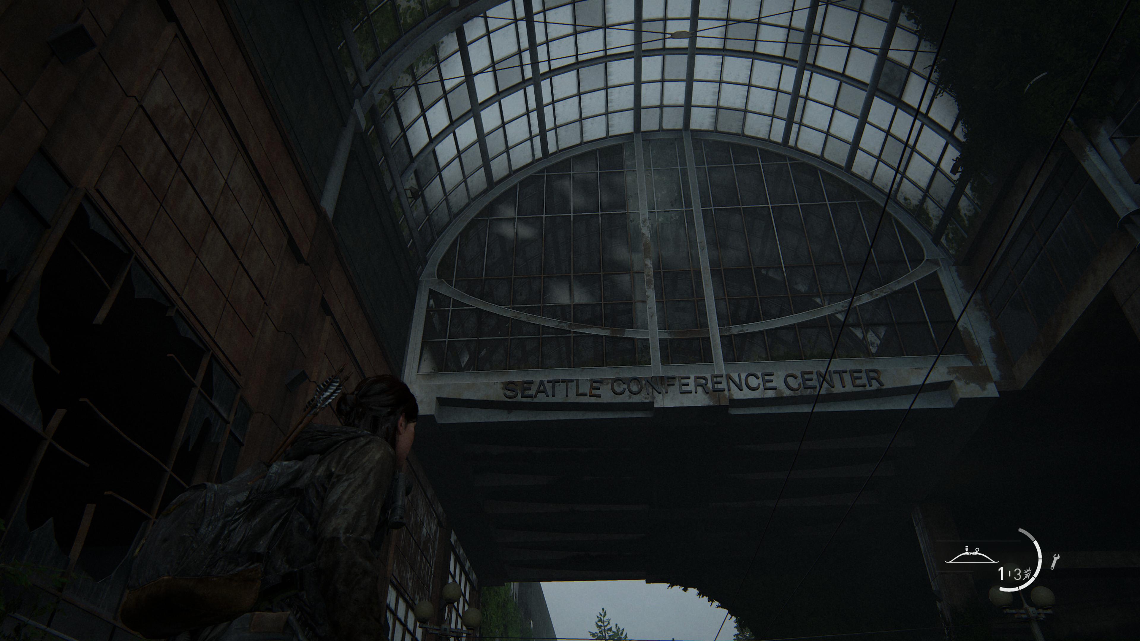 In the game you – as Ellie – can explore Downtown Seattle on foot and on horseback to pick up collectibles, trigger converstaions and (of course) fight your way past enemies. Overrun by the infected in the game, the courthouse is actually the William Kenzo Nakamura US Courthouse on Fifth Avenue.